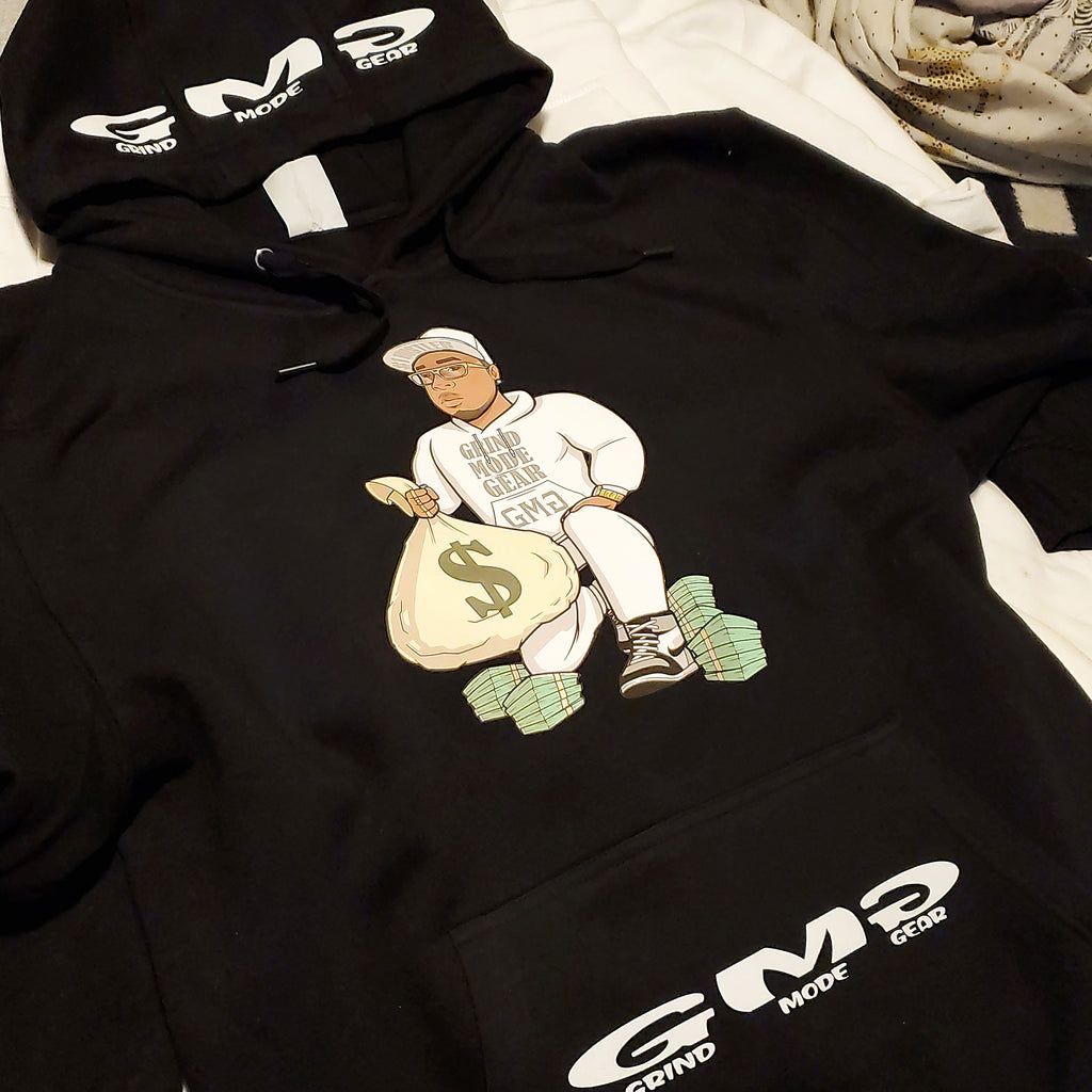 Custom ,Hand Crafted,Premium,Fashion 80/20 Cotton blend hoodie With Grind Mode Gear #1 Hustler Design